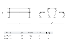 Solu un piknika galda komplekts 25108 apvieno minimālistisku, mūsdienīgu dizianu un augstu izturību, padarot to par īpaši piemērotu izvēli sporta laukumiem, stadioniem un aktīvās atpūtas zonām. Piknika galda askētiskā forma, stingrā uzbūve un izturīgie materiāli, nodrošina ilgmūžību intensīvas lietošanas apstākļos un prasa zemas apkopes izmaksas.
