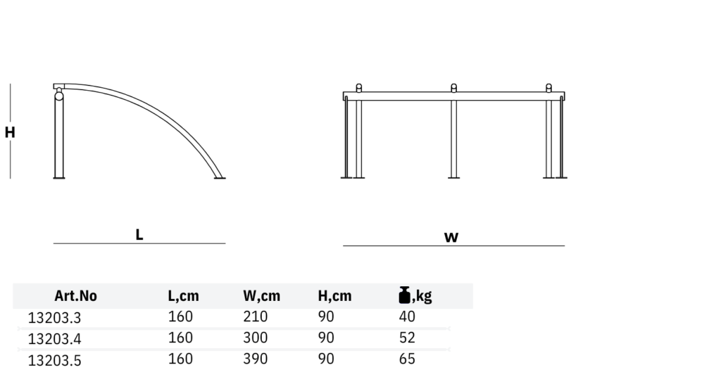 | IZMĒRI, cm | •210(W) x 160(L) x 90 (H) – Art.No. 13203.3 •300(W) x 160(L) x 90 (H) – Art.No. 13203.4 •390(W) x 160(L) x 90 (H) – Art.No. 13203.5 ![]() |