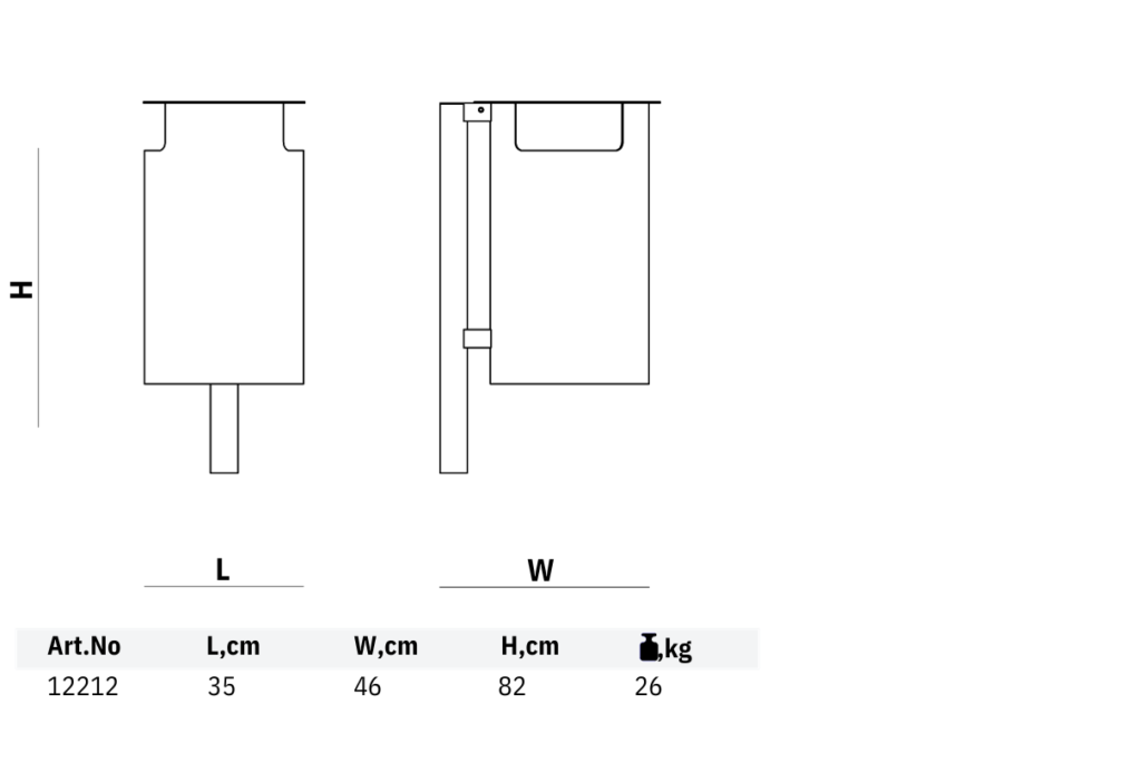 | IZMĒRI, cm | 46(W) x 35(L) x 82 (H) Art.No. 12212.40