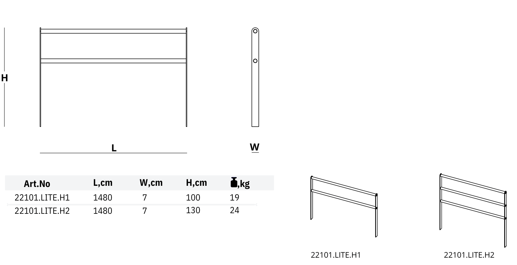 | IZMĒRI, cm | • 7(W) x 1480(L) x 100 (H) – Art.No 22101.LITE.H1 • 7(W) x 1480(L) x 130 (H) – Art.No 22101.LITE.H2 ![]() |