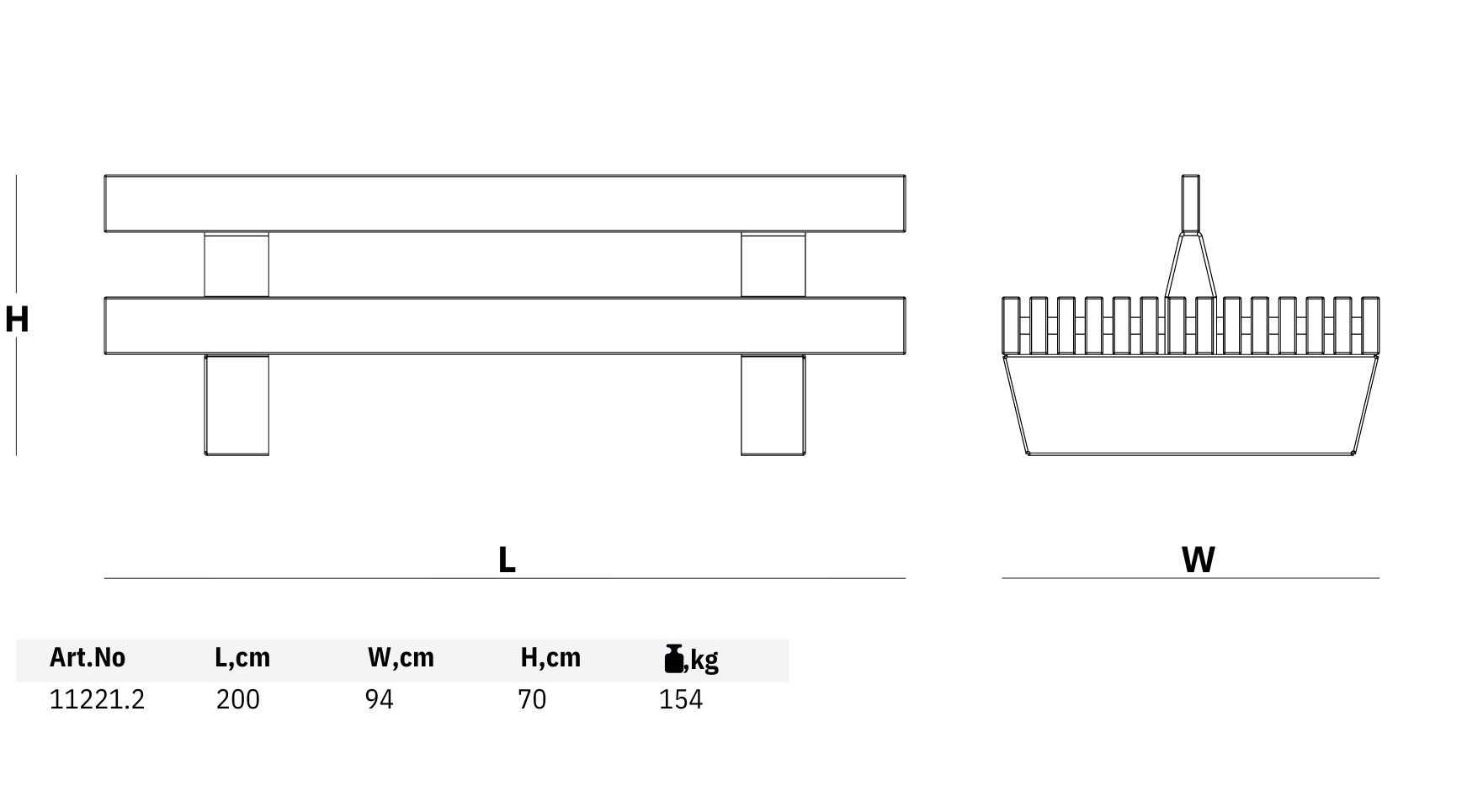 Modulārais sols 11221.02 izceļas ar masīvu koka korpusu un rāmi, tādējādi padarot šos solus par piemērotu izvēli lielās platībās gan iekštelpās, gan ārtelpās – no pilsētas laukumiem līdz birojiem un izstāžu zālēm, jo pateicoties savam apjomīgajam izskatam šie soli vizuāli “nepazudīs”.