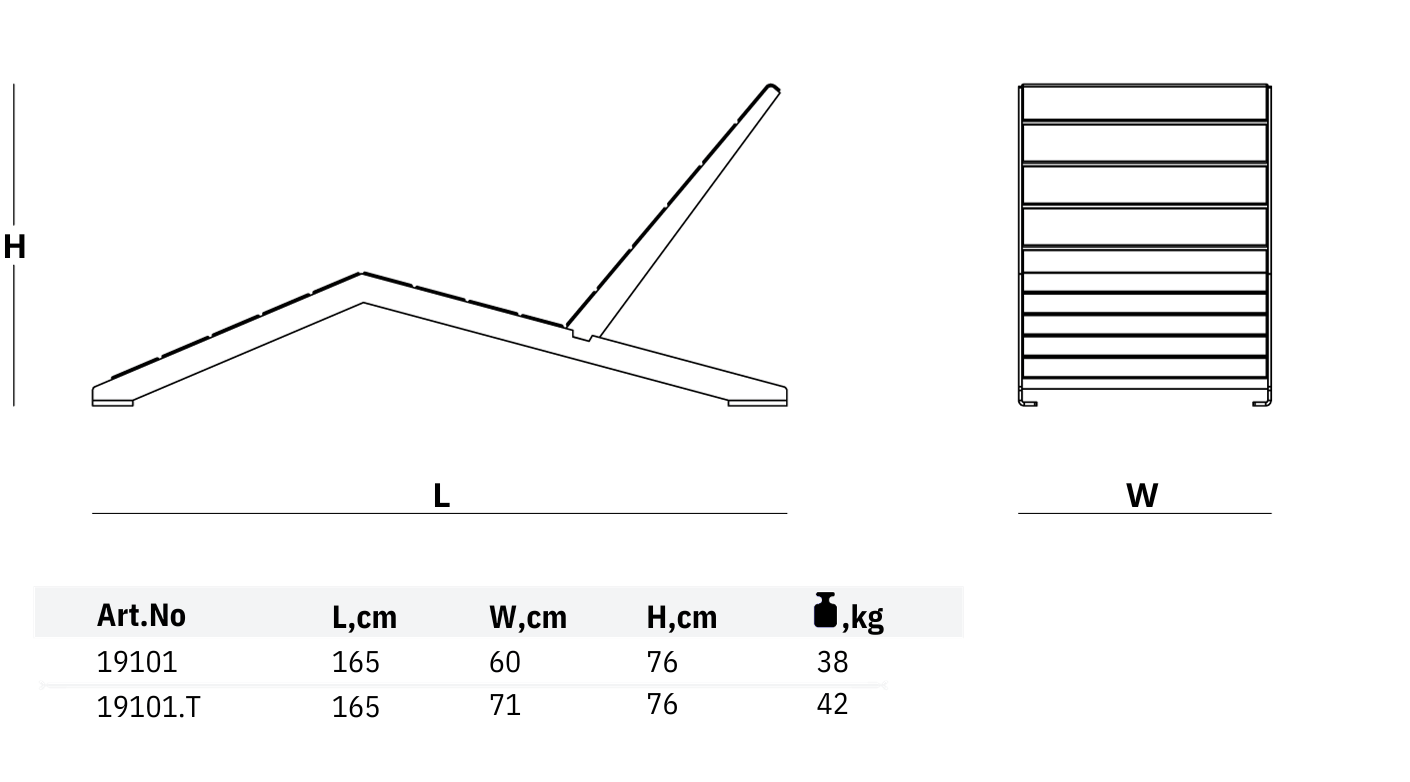 | IZMĒRI, cm | •60(W) x 165(L) x 76 (H) – Art.No 19101 •71(W) x 165(L) x 76 (H) – Art.No 19101.T ![]() |