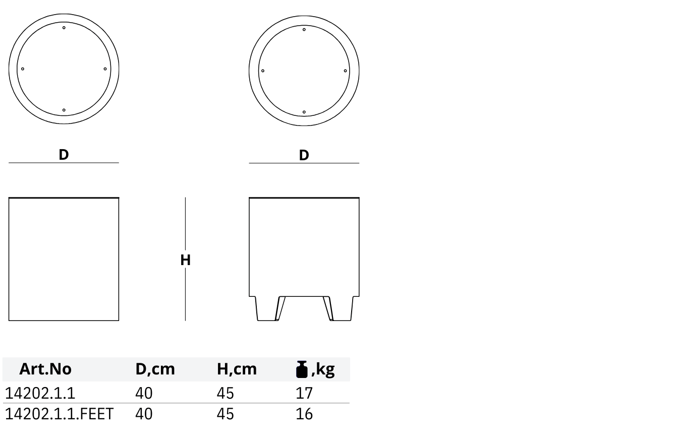 | IZMĒRI, cm | 40 (D) x 45 (H) – Art.No 14202.1.1 ; 14202.1.1.FEET