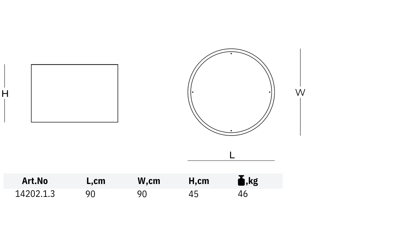| IZMĒRI, cm | 90 (D) x 45 (H) – Art.No 14202.1.3 ; 14202.1.3.FEET