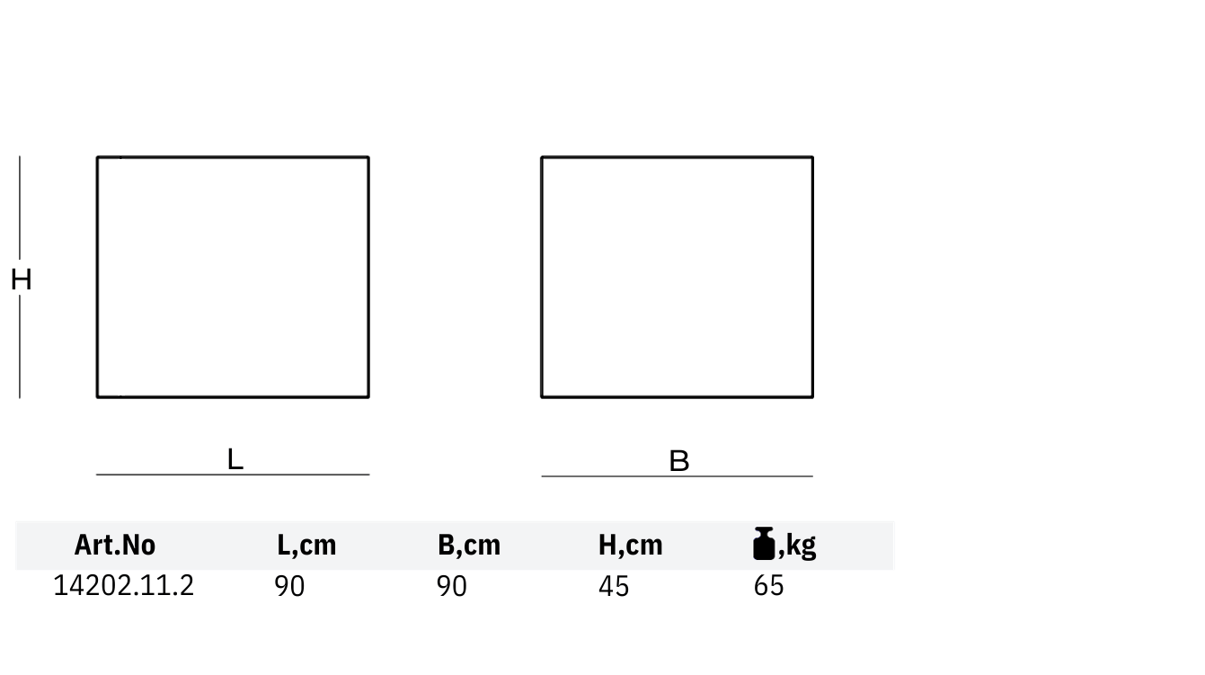 | IZMĒRI, cm | 90 (W) x 90(L) x 45 (H)![]() |