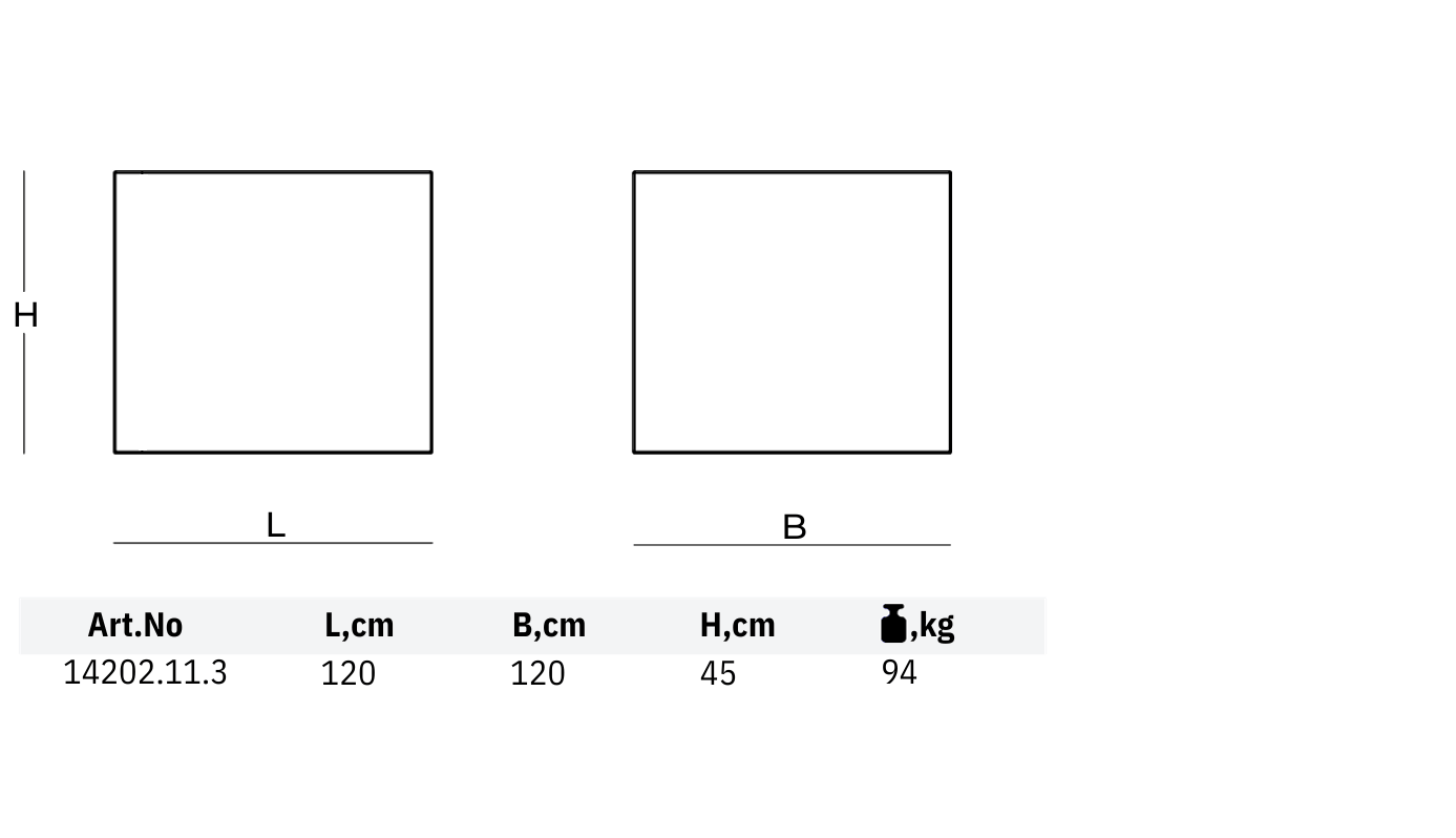 | IZMĒRI, cm | 120 (W) x 120(L) x 45 (H)![]() |