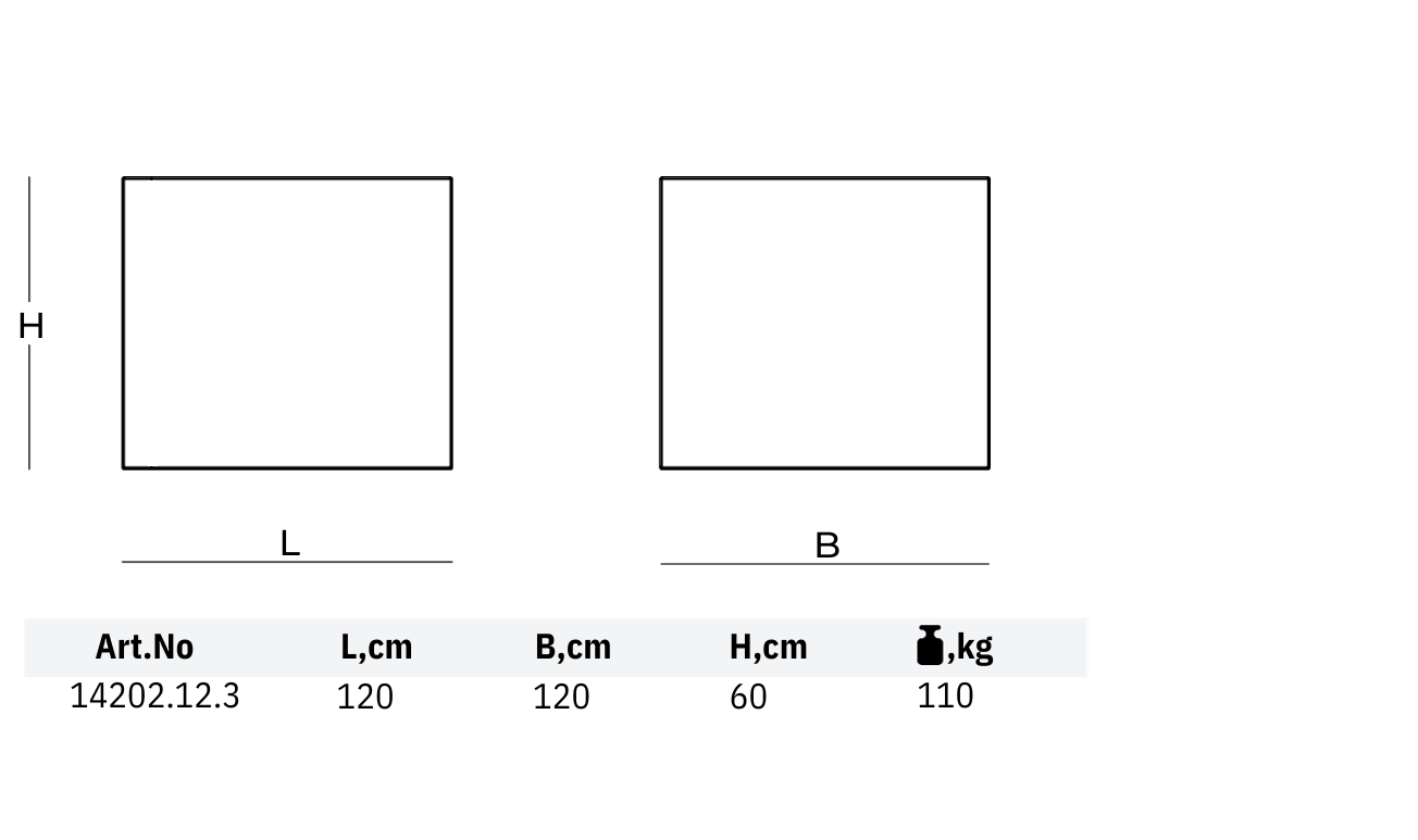 | IZMĒRI, cm | 120 (W) x 120(L) x 60 (H) – Art.No 14202.12.3 ; 14202.12.3.FEET