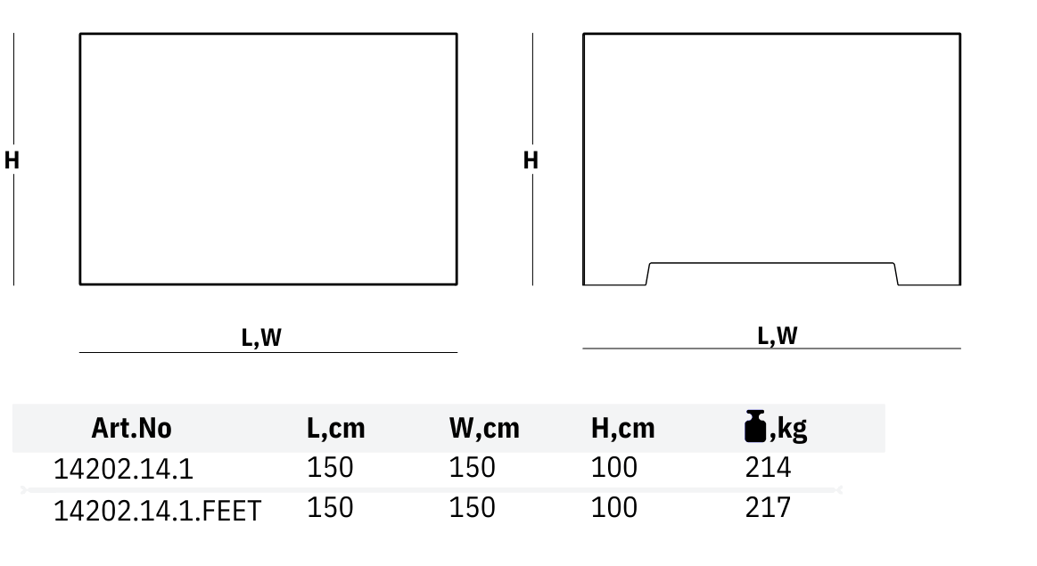 | IZMĒRI, cm | 150 (W) x 150(L) x 100 (H) – Art.No 14202.14.1 ; 14202.14.1.FEET