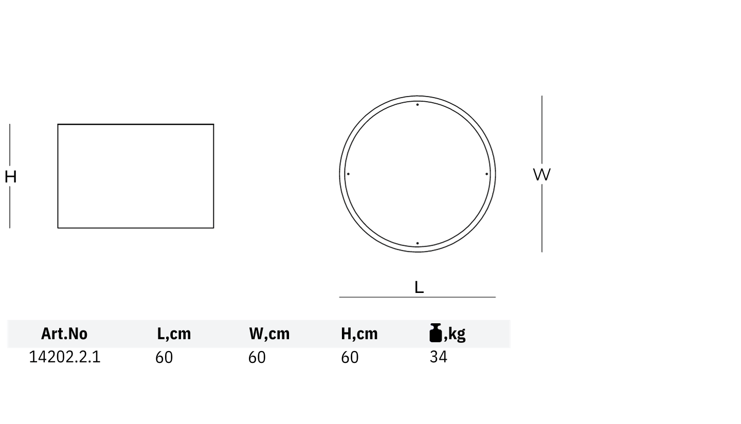 | IZMĒRI, cm | 60 (D) x 60 (H) – Art.No 14202.2.1 ; 14202.2.1.FEET