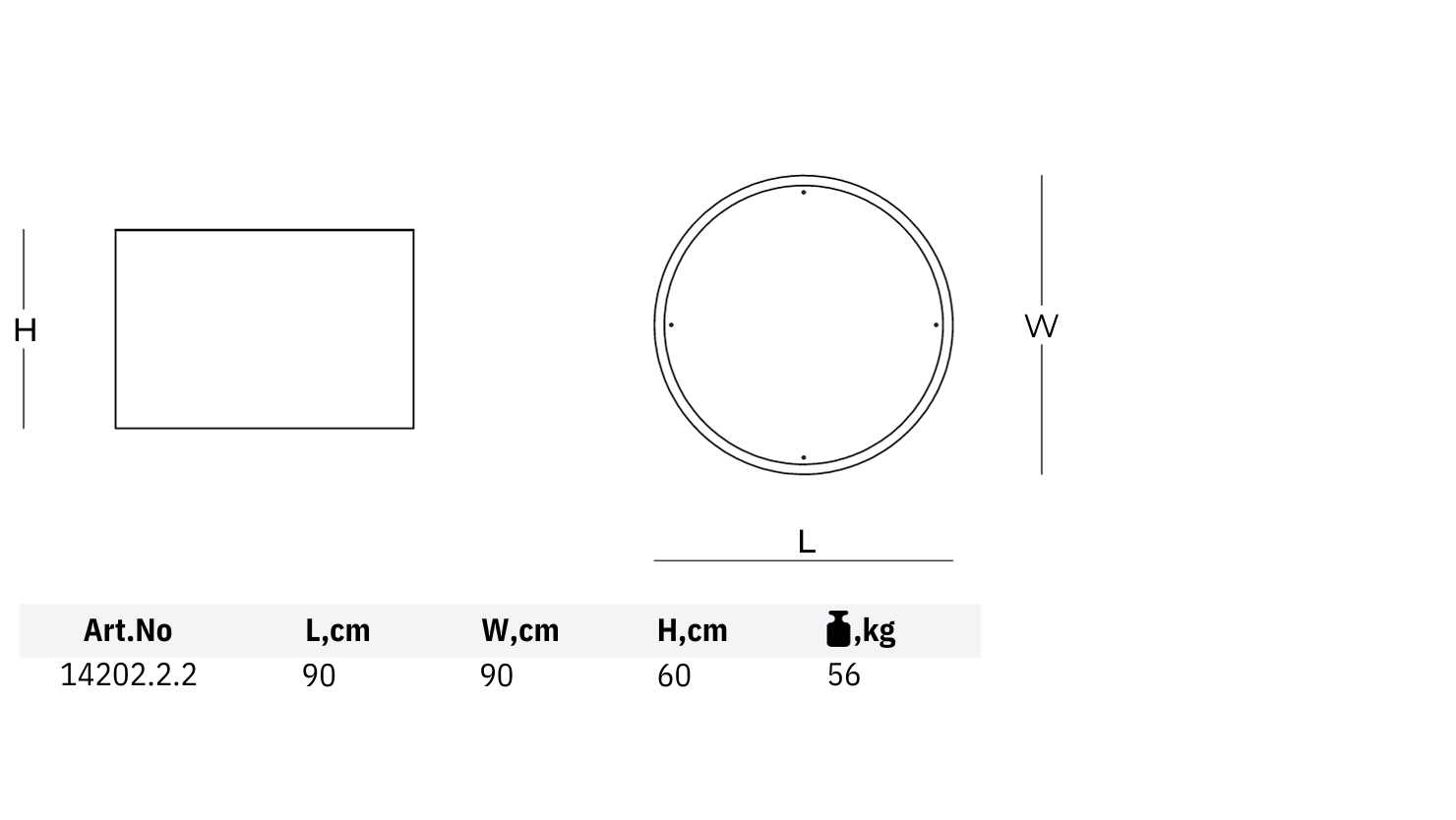 | IZMĒRI, cm | 90 (D) x 60 (H) – Art.No 14202.2.2 ; 14202.2.2.FEET