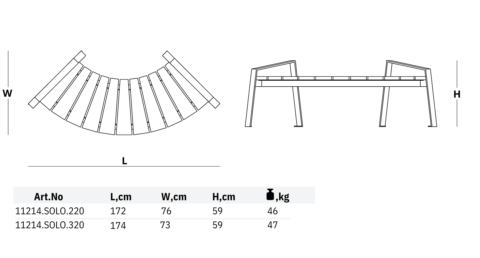 Sols 11214.SOLO izceļas ar liektu siluetu un oriģinālu dizainu. Pateicoties mūsdienīgajam veidolam, šis modulārais sols piedāvā dažādas stila variācijas un atšķirīgus vizuālos risinājumus pilsētas ainavās.