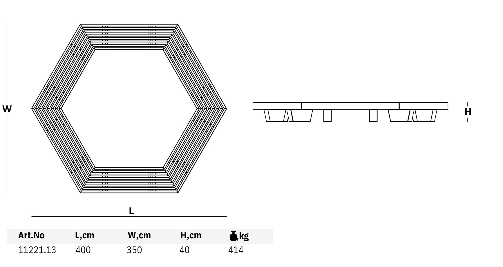 Modulārais sols 11221.13 izceļas ar masīvu koka korpusu un rāmi, tādējādi padarot šos solus par piemērotu izvēli lielās platībās gan iekštelpās, gan ārtelpās – no pilsētas laukumiem līdz birojiem un izstāžu zālēm, jo pateicoties savam apjomīgajam izskatam šie soli vizuāli “nepazudīs”.