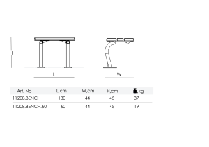 The bench 11208.BENCH.60 is manufactured with pre-drilled holes and supplied with screws, and it requires easy self-assembly.