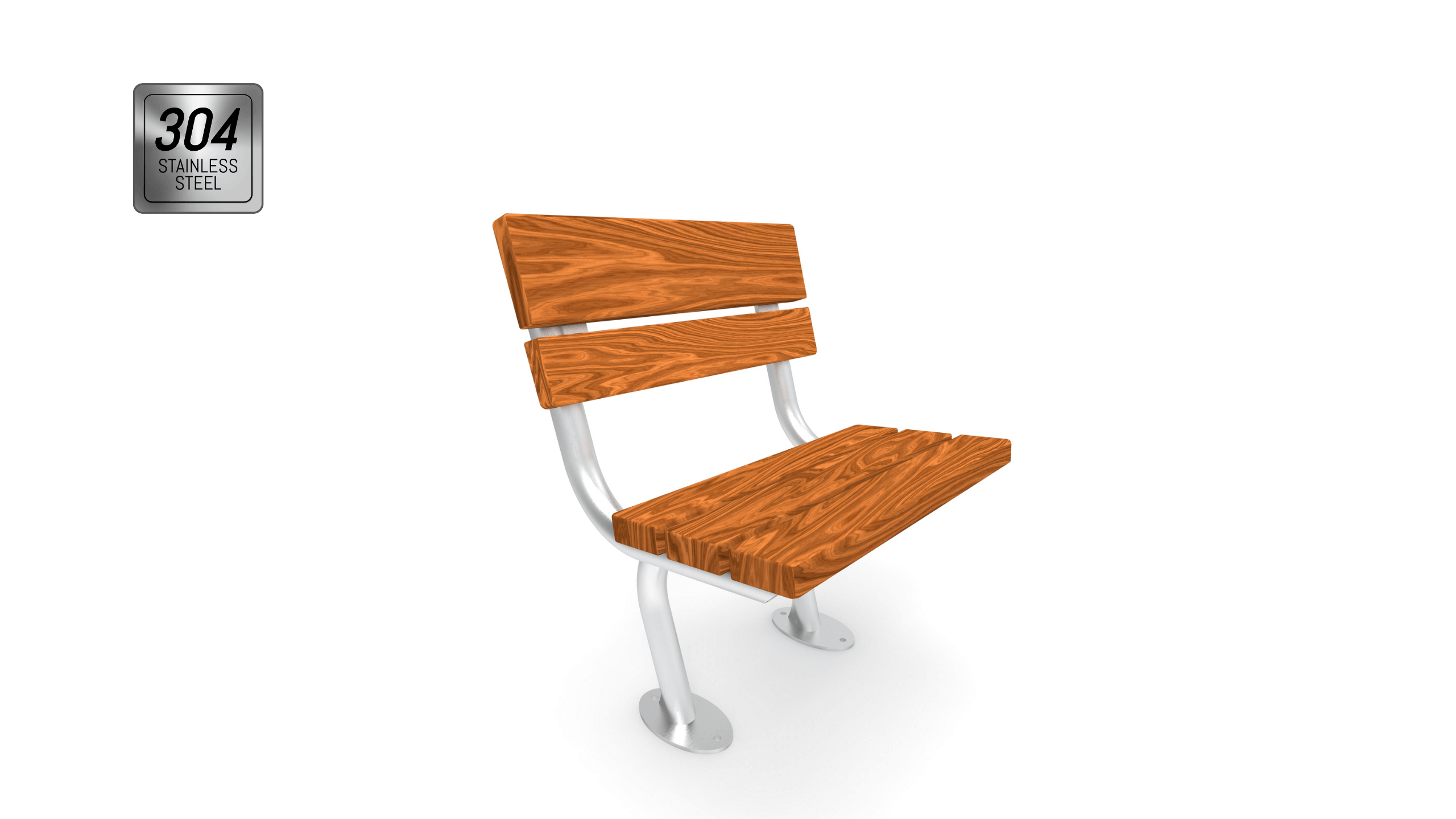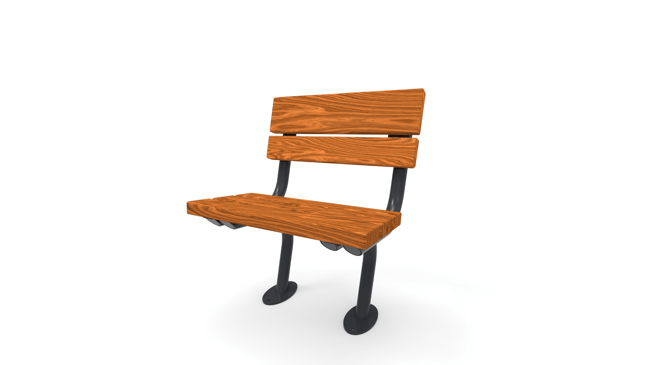 - Wooden seat and backrest screwed onto the steel frame – 1 pc. of each.