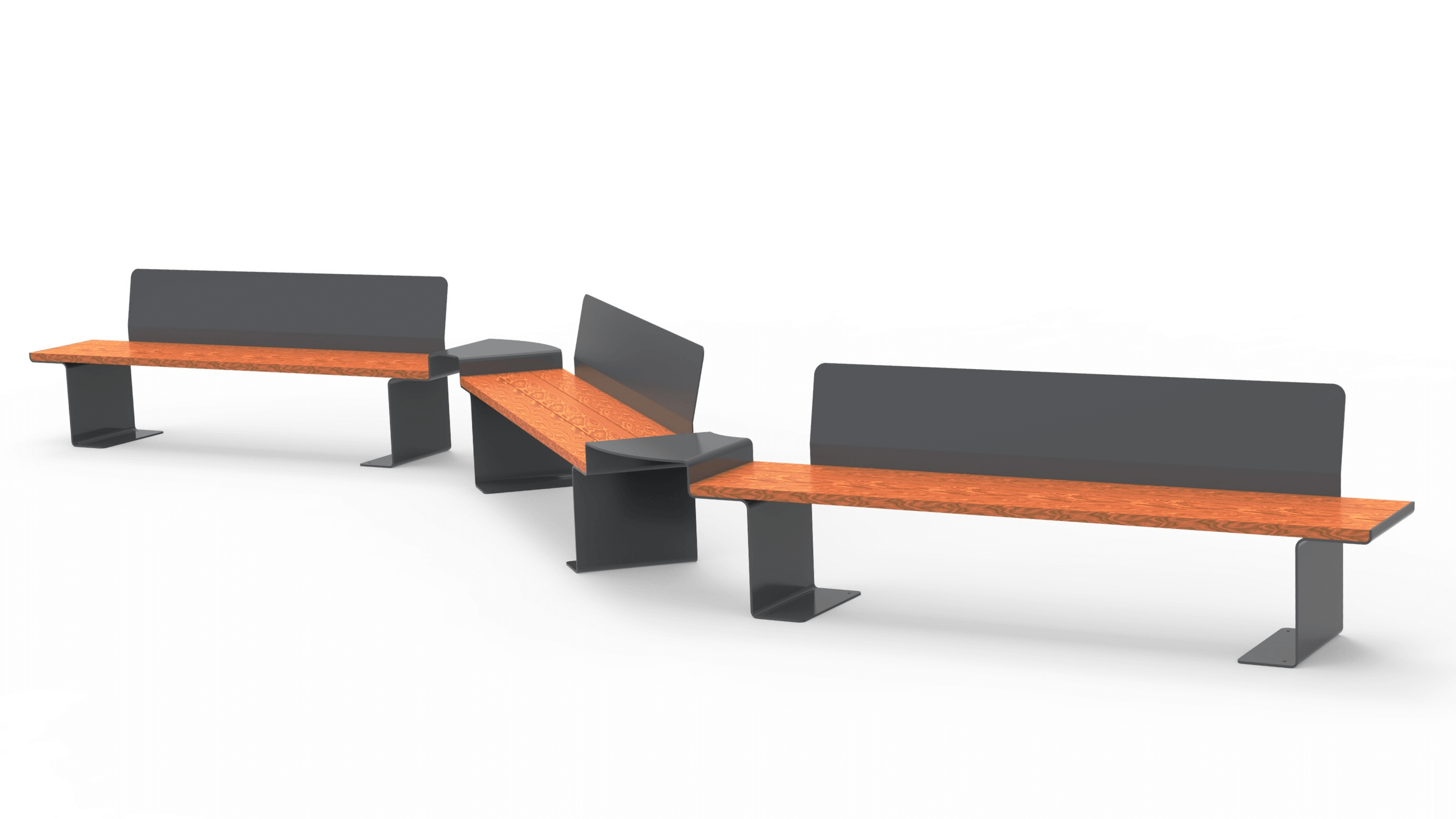 A practical benefit for landscape designers and architects is its versatility: any of the 11210 series benches can be interjoined with different angle tables, allowing them to adapt to literally any space by building any shape and length of outdoor seating.
