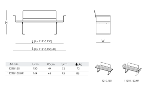 | DIMENSIONS, cm | 44(W) x 150(L) x 75 (H) Art.No. 11210.150 44(W) x 164(L) x 75 (H) Art.No.11210.150.HR ![]() |
