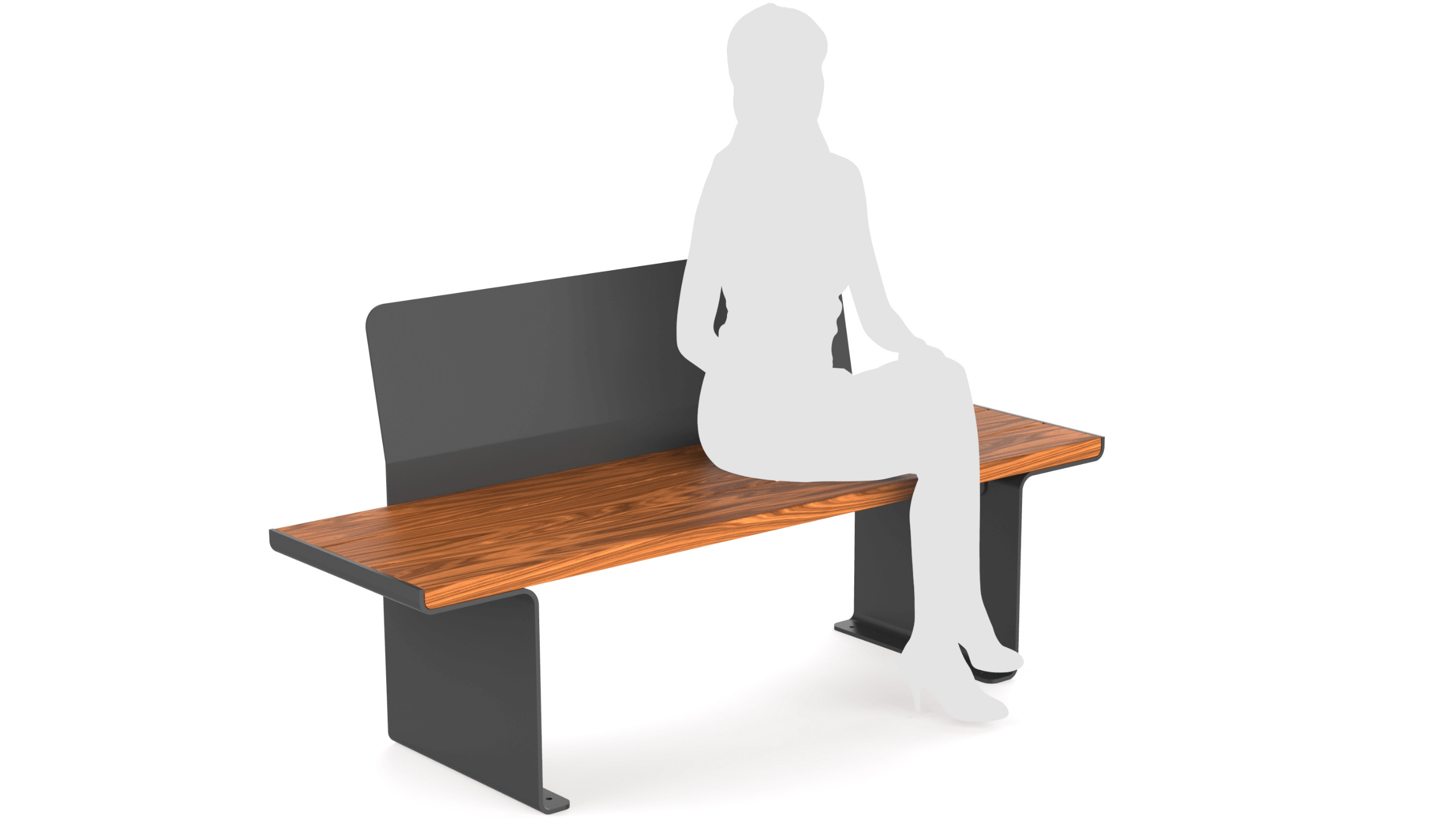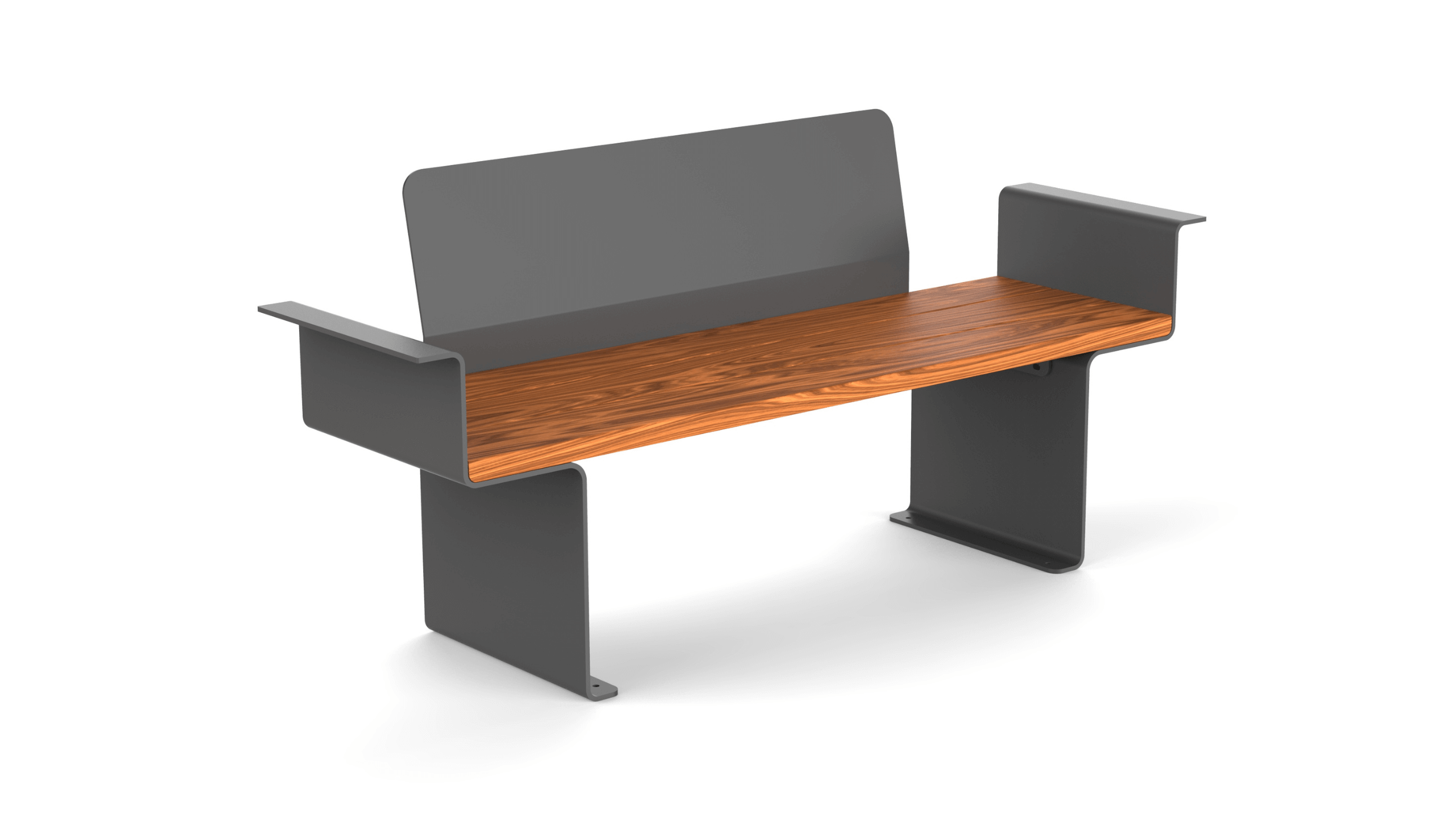 The Bench 11210.150 stands out due to its extended size of 150 cm and an eye-catching steel backrest, but also incorporates tiny accents, as slightly rounded edges and curved bends in its frame. Every little detail in its design truly makes the bench a distinctive piece of urban furniture.