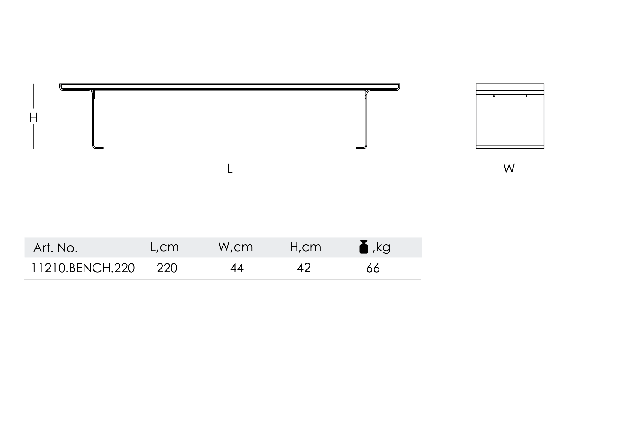 The bench 11210.BENCH.220 is manufactured with pre-drilled holes and supplied with screws, and it requires easy self-assembly.