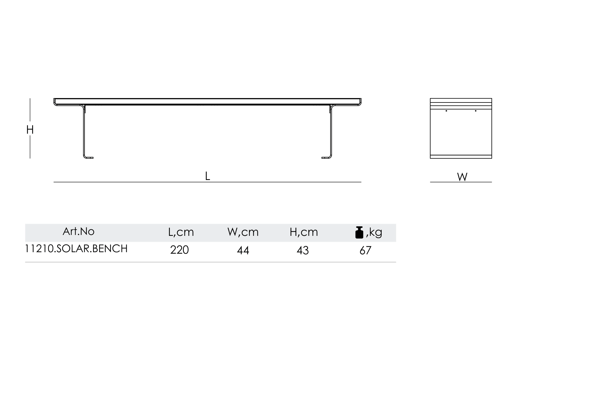 The bench 11210.SOLAR.BENCH is manufactured with pre-drilled holes and supplied with screws, and it requires easy self-assembly.