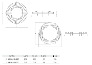 | WEIGHT, kg | • 138 For Art.No. 11214.ROUND.220 • 216 For Art.No. 11214.ROUND.320 |