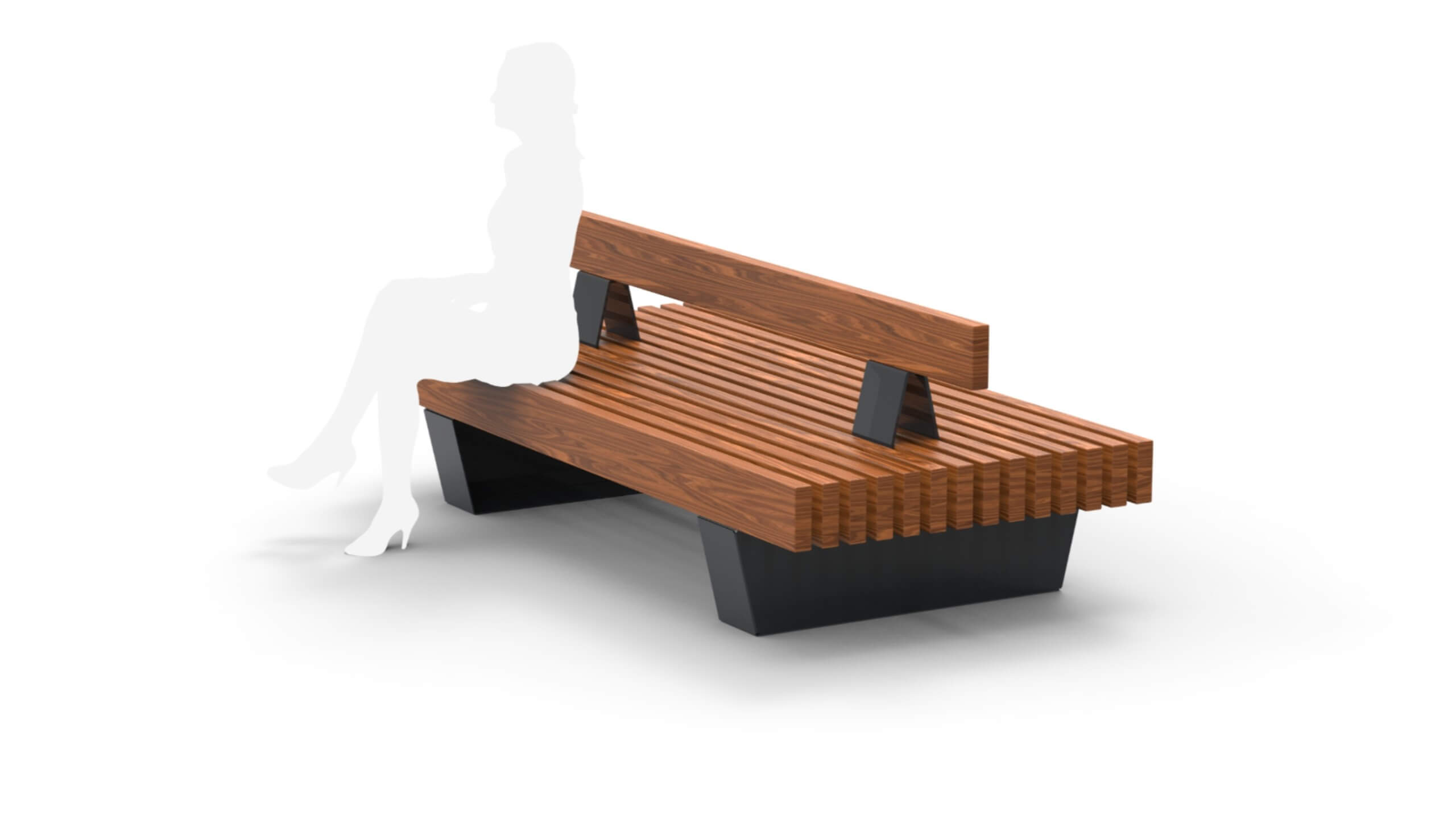 Bench 11221.02 boasts a solid wooden body and a frame, offering practical double-sided seating option. Due to its massive body, it doesn’t ‘disappear’ in various settings, making it well-suited for both outdoor landscapes and indoor spaces such as office areas, malls, expansive galleries, and exhibition halls.