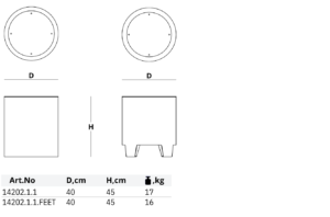 | DIMENSIONS, cm | 40 (D) x 45 (H) – For Art.No 14202.1.1 ; 14202.1.1.FEET