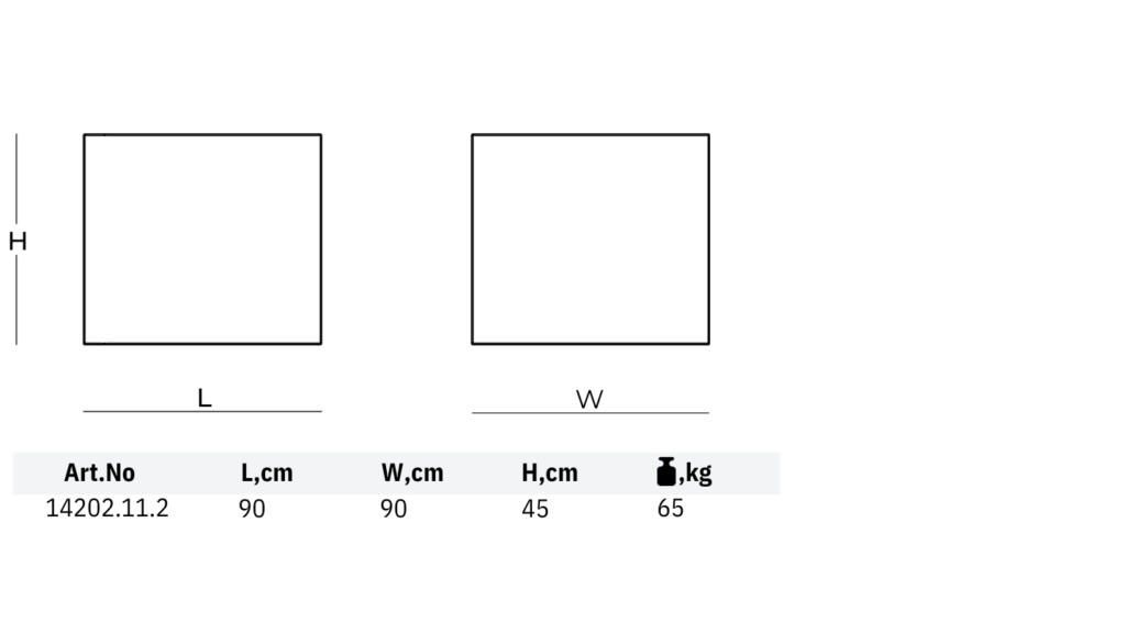 | DIMENSIONS, cm | 90 (W) x 90(L) x 45 (H)![]() |