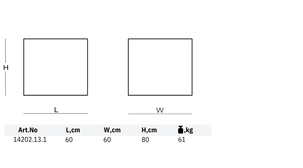 With its modern minimalist design, Planter 14202.13.1 seamlessly fits into any urban landscape and building, providing the flexibility to arrange in a group with diverse heights and sizes. Planter 14202.13.1 is easy to combine with other forms of planters, such as round-shaped or rectangular ones.