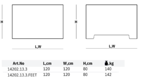 | DIMENSIONS, cm | 120 (W) x 120(L) x 80 (H) – For Art.No 14202.13.3 ; 14202.13.3.FEET