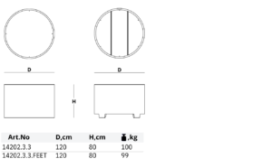 | DIMENSIONS, cm | 120 (D) x 80 (H) – For Art.No 14202.3.3 ; 14202.3.3.FEET