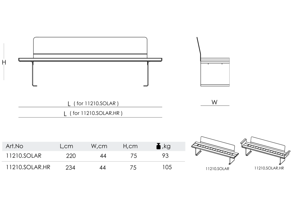 | DIMENSIONS, cm | 44(W) x 220(L) x 75 (H) For Art.No 11210.SOLAR 44(W) x 234(L) x 75 (H) For Art.No 11210.SOLAR.HR ![]() |
