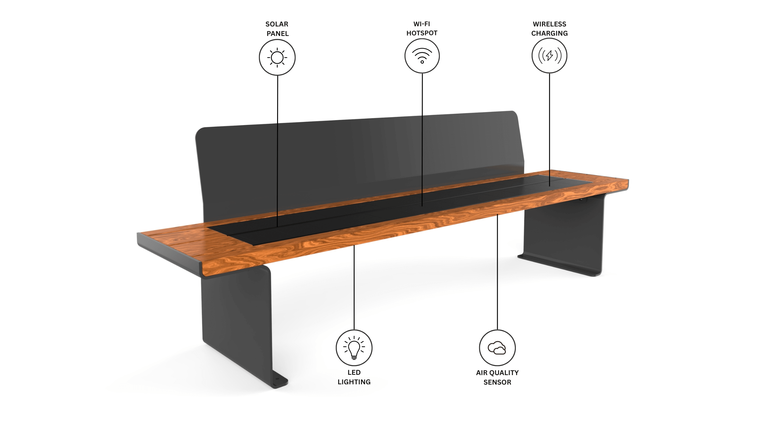 For enhanced functionality, the Bench 11210.SOLAR offers modular add-ons, including an air quality sensor and a WiFi router integrated into a separate solar-powered panel. These features make it an ideal solution for smart cities, public parks, and other urban spaces, providing not only a comfortable seating option but also a hub for connectivity. Designed to operate in temperatures ranging from -10°C to 50°C, the bench is built to withstand diverse climates while maintaining its performance and aesthetic appeal.