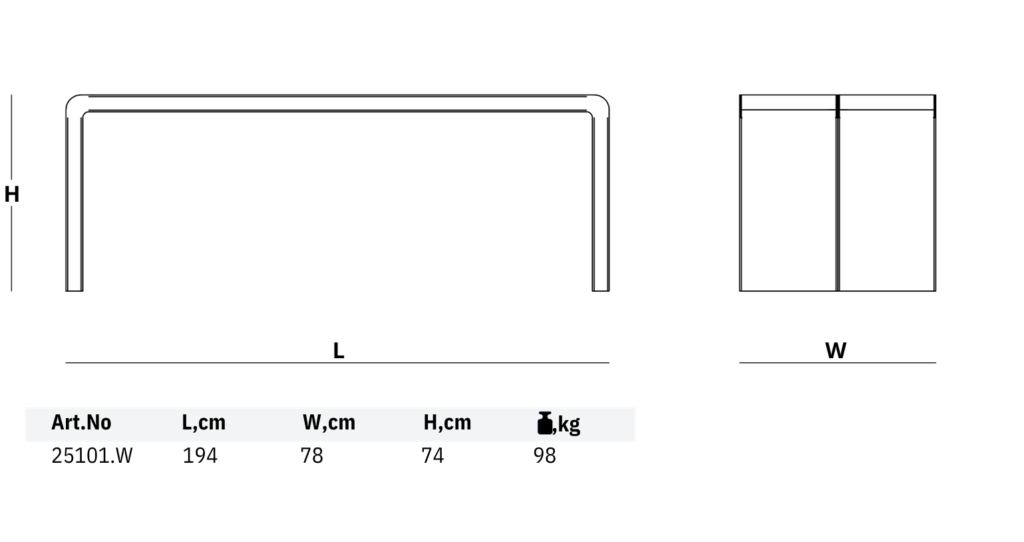 | MATERIAL | For frame: • Carbon steel or • Stainless steel For table top: • Pine tree or • Iroko hardwood more about Materials |