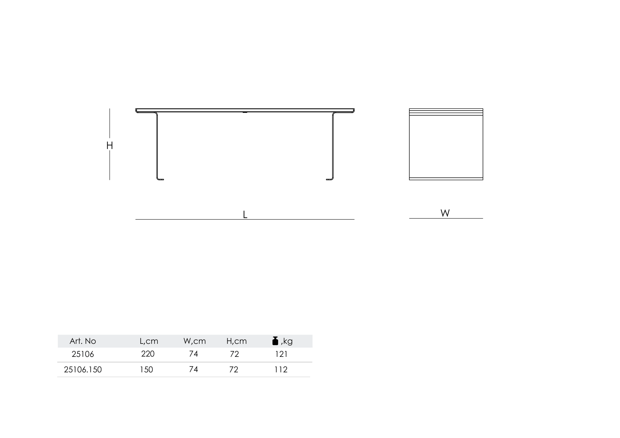 | WEIGHT, kg | 112 for Art. No.25106.150 121 for Art. No.25106.220 |