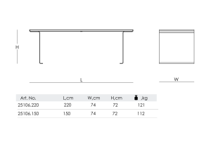 | DIMENSIONS, cm | 74(W) x 220(L) x 72 (H) for Art. No.25106.220 74(W) x 150(L) x 72 (H) for Art. No.25106.150 ![]() |