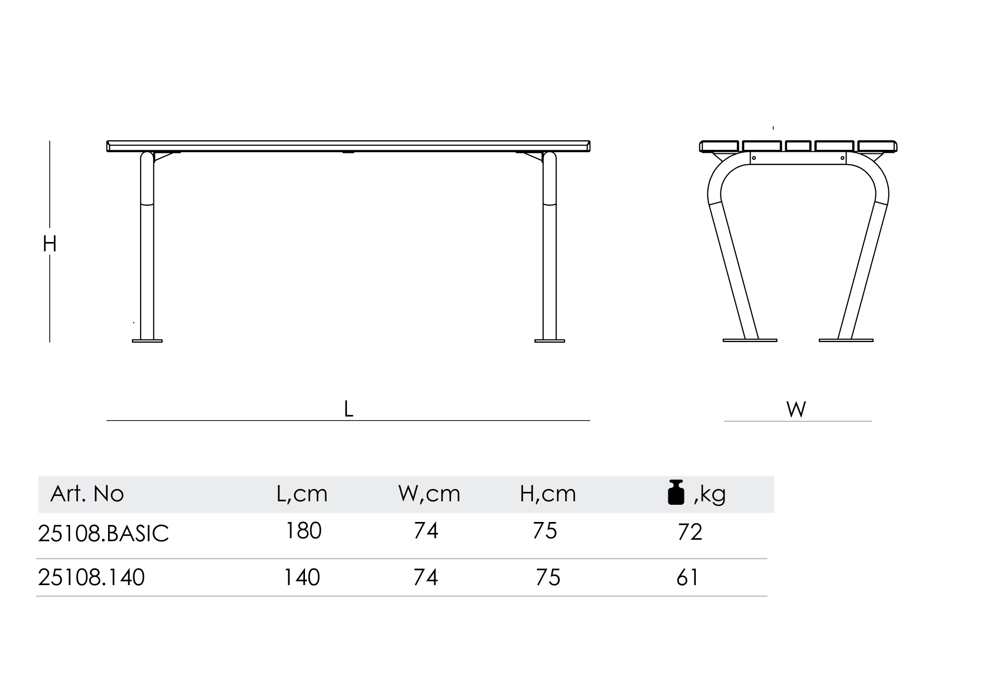 | WEIGHT, kg | • 72 – For Art.No. 25108.BASIC • 61 – For Art.No. 25108.140 |