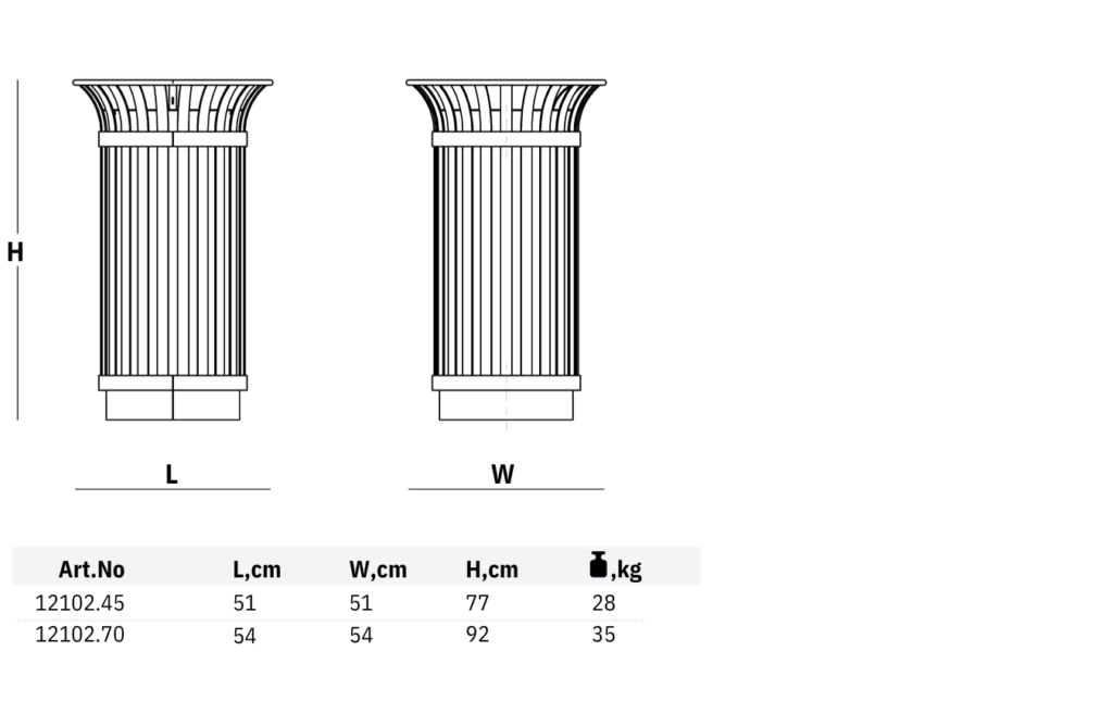 | DIMENSIONS, cm | •29(W) x 40(L) x 88 (H) – For Art.No 12102.45 •29(W) x 40(L) x 88 (H) – For Art.No 12102.70 ![]() |