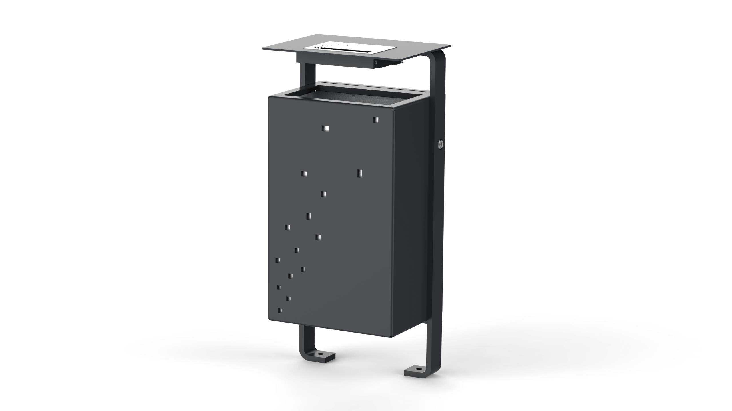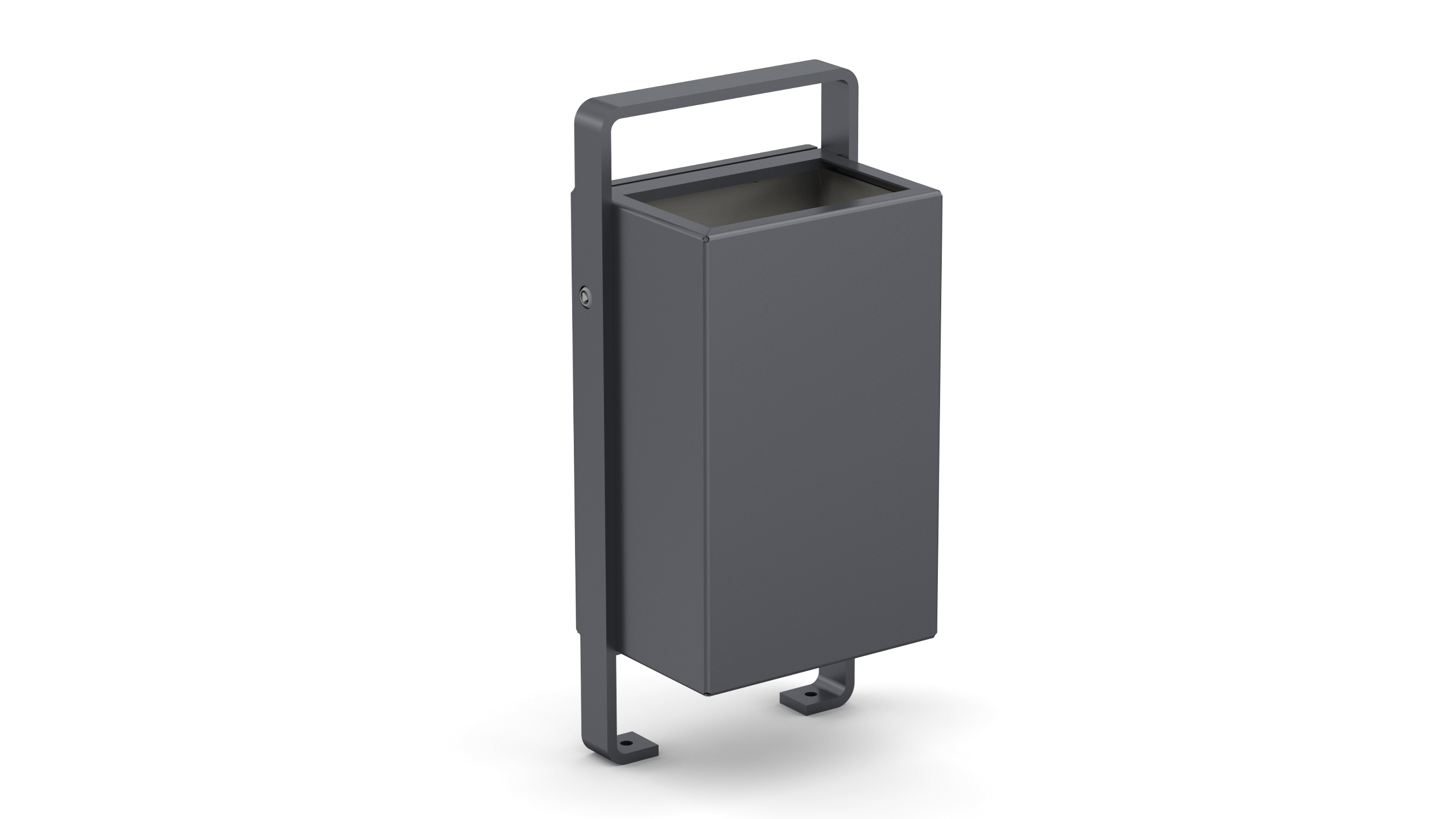 The trash bin 12208 is ready for installation; it has mounting holes for anchoring in the ground.