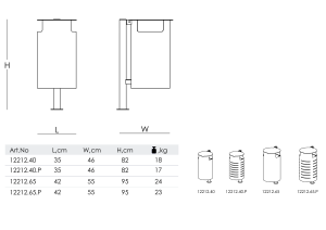 | DIMENSIONS, cm | • 46(W) x 35(L) x 82 (H) For Art.No. 12212.40; Art.No. 12212.40.P • 55(W) x 42(L) x 95 (H) For Art.No. 12212.65; Art.No. 12212.65.P ![]() |