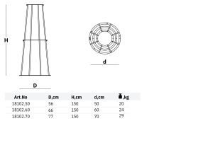 | DIMENSIONS, cm | •56(D) x 150(H) x 50 (d) – For Art.No 18102.50 •66(D) x 150(H) x 60 (d) – For Art.No 18102.60 •76(D) x 150(H) x 70 (d) – For Art.No 18102.70 ![]() |